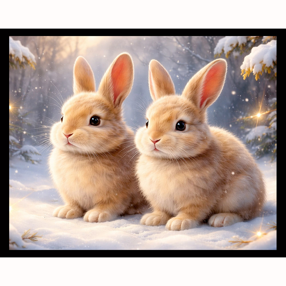 Twin Bunnies in Snow